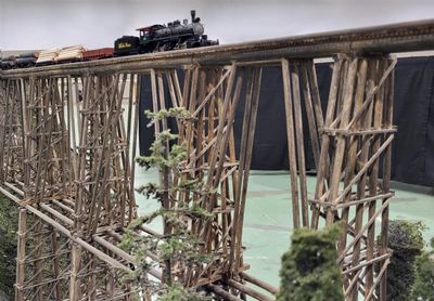 There will be two operating model railroads. The first is the O scale narrow gauge South Park and Western layout, which is 20 feet long and 8 feet wide and is patterned after a 1915 steam train trip from Denver, Colorado to Oakland, California. It includes mines, a sawmill, a city with an operating streetcar line, western towns and a harbor scene with a fish cannery. The second railroad is the Haslam Creek bridge line, an HO scale narrow gauge railroad which includes a handmade bridge that is over 7 feet long and 3 feet high.